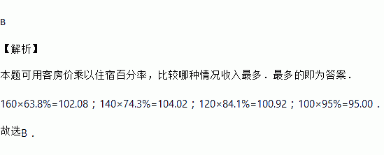 在旅游周,要使宾馆客房收入最大,客房标价应选( )