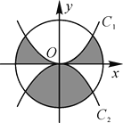 如图,⊙O的半径为2,C1是函数y=x2的图象,C2是函数y=-x2的图象,则阴影部分的面积是________.