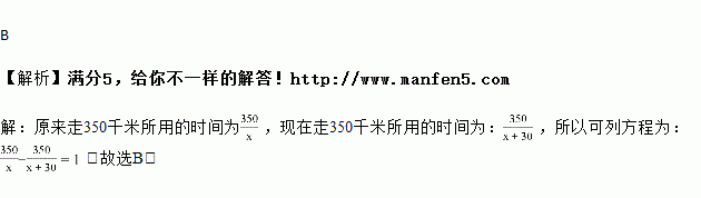 某特快列车在最近一次的铁路大提速后,时速提高了30千米/小时,则该列车行驶350千米所用的时间比原来少用1小时,若该列车提速前的速度是x千米/小时,下列所列方程正确的是( )