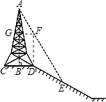 分析:过点D构造矩形,把塔高的影长分解为平地上的BD,斜坡上的DE.然后根据影长的比分别求得AG,GB长,把它们相加即可.