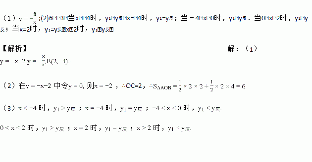 (3)当x取非零的实数时,试比较一次函数值与反比例函数值的大小.