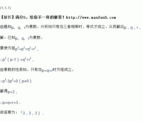 设、、为素数,则方程的所有可能的解、、组成的三元数组 是________.