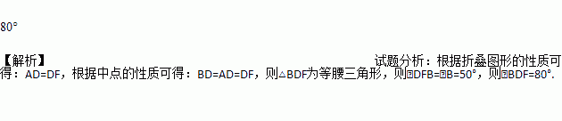 如图,D是AB边上的中点,将△ABC沿过D的直线折叠,使点A落在BC上F处,若∠B=50°,则∠BDF=__________.