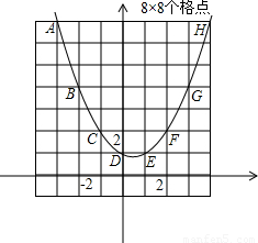 验证:如果抛物线经过9个格点,那么在抛物线的顶点及一侧至少经过5个格点,由于这5个格点的横坐标都差1,考虑到抛物线的递增或递减趋势,这5点的纵坐标的极差不小于1+2+3+4=10,显然这5个格点不全在8×8网格之内.