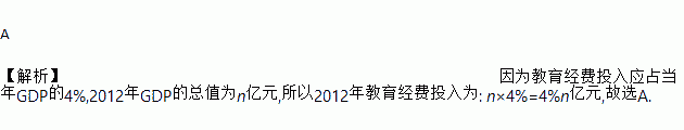 根据《国家中长期教育改革和发展规划纲要》,教育经费投入应占当年GDP的4%.若设2012年GDP的总值为亿元,则2012年教育经费投入可表示为( )亿元.