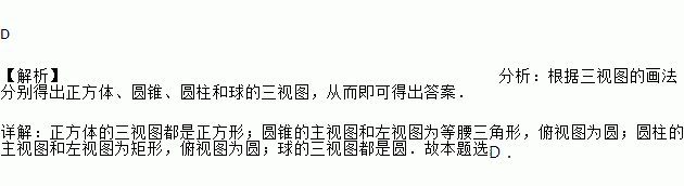 A. 正方体 B. 圆锥 C. 圆柱 D. 球