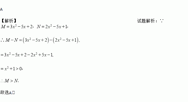 若M=3x2﹣5x+2,N=2x2﹣5x+1,则M、N的大小关系为( )
