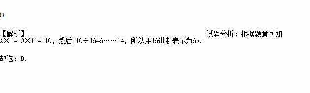 例如,用十六进制表示:E+F=1D,则A×B=( )