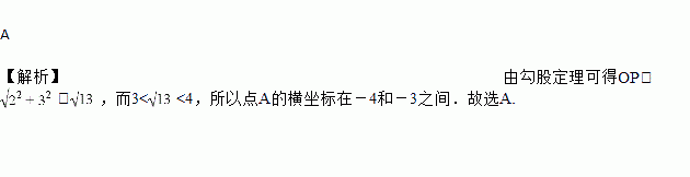 如图,在平面直角坐标系中,点P的坐标为(-2,3),以点O为圆心,OP的长为半径画弧,交x轴的负半轴于点A,则点A的横坐标在( )