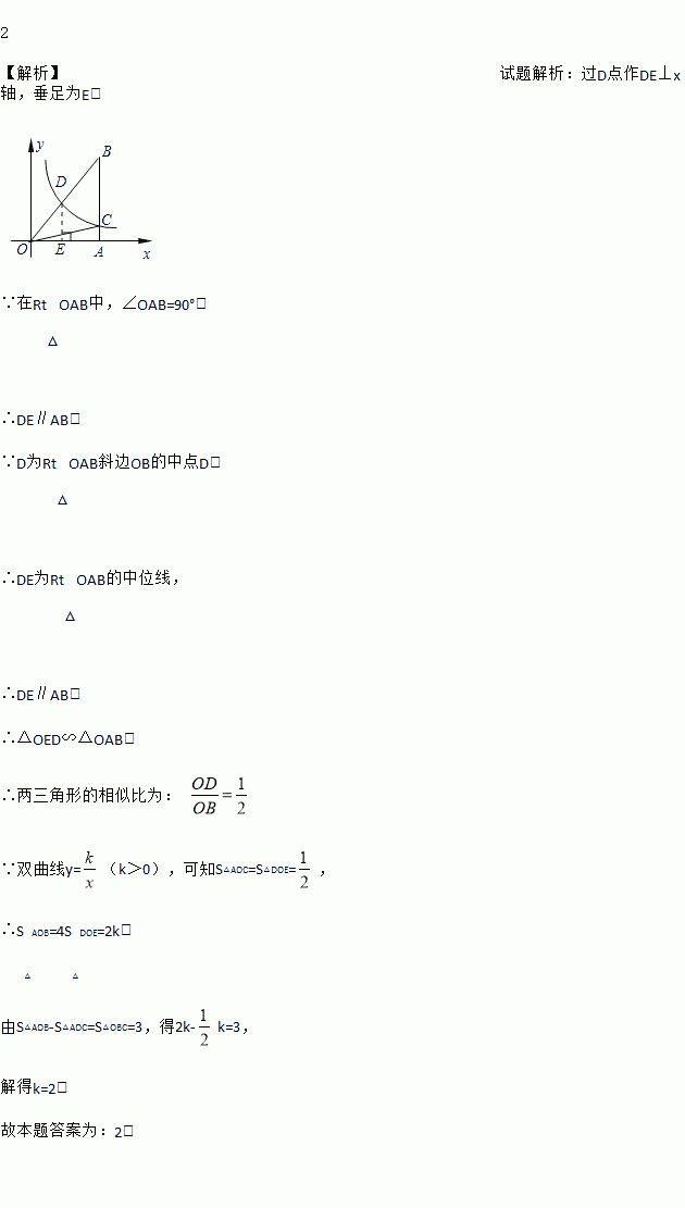 (k>0)与直角三角形OAB的直角边AB相交于点C,且BC=3AC,若△OBC的面积为3,则k=_________.