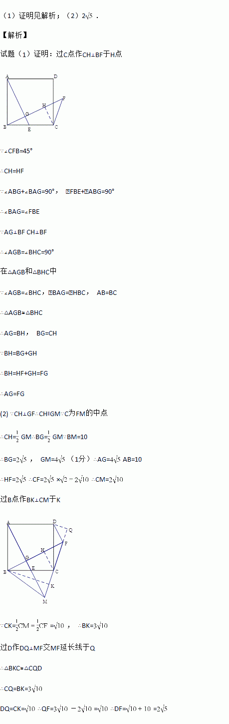 (2)如图2延长FC、AE交于点M,连接DF、BM,若C为FM中点,BM=10,求FD的长.