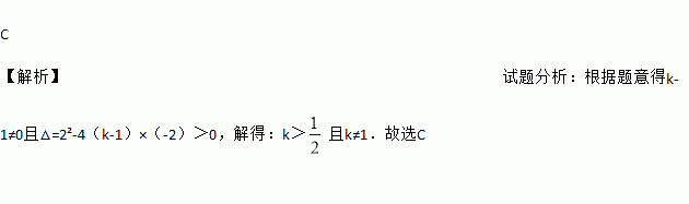 若关于x的一元二次方程(k﹣1)x2+2x﹣2=0有两个不相等的实数根,则k的取值范围是( )