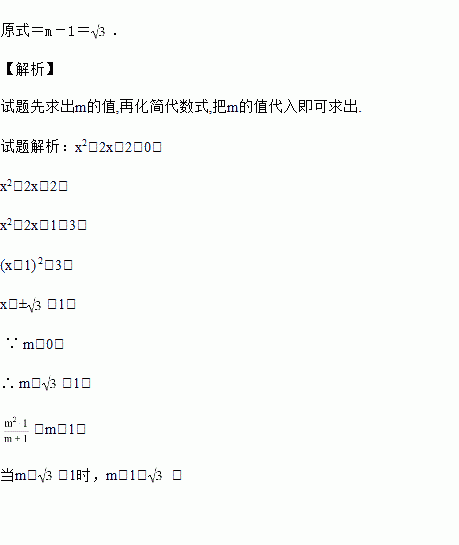 已知m是方程x2-2x-2=0 的根,且m>0,求代数式的值
