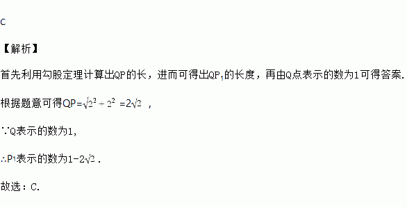 如图,在Rt△PQR中,∠PRQ=90°,RP=RQ,边QR在数轴上.点Q表示的数为1,点R表示的数为3,以Q为圆心,QP的长为半径画弧交数轴负半轴于点P1,则P1表示的数是( )
