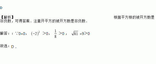 在数-5,0, , , , 中有平方根的个数是( )