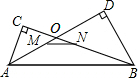分析:首先设BC与AD相交于点O,由∠C=∠D=90゜,易得△AOC∽△BOD,根据相似三角形的对应边成比例,可得AO:AC=BO:BD,又由AM=AC,BN=BD,即可证得AO:AM=BO:BN,然后由平行线分线段成比例定理,证得MN∥AB.