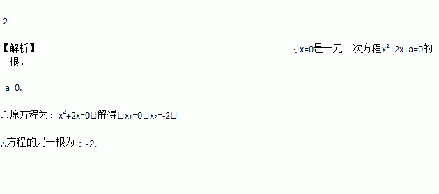 若x=0是一元二次方程x2+2x+a=0的一根,则另一根为_____.