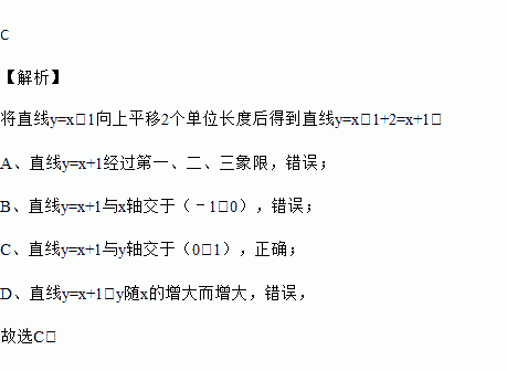 已知:将直线y=x﹣1向上平移2个单位长度后得到直线y=kx+b,则下列关于直线y=kx+b的说法正确的是( )