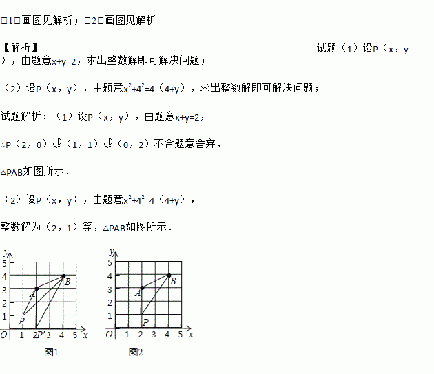 (2)在图2中画△PAB,使点P,B横坐标的平方和等于它们纵坐标和的4倍.