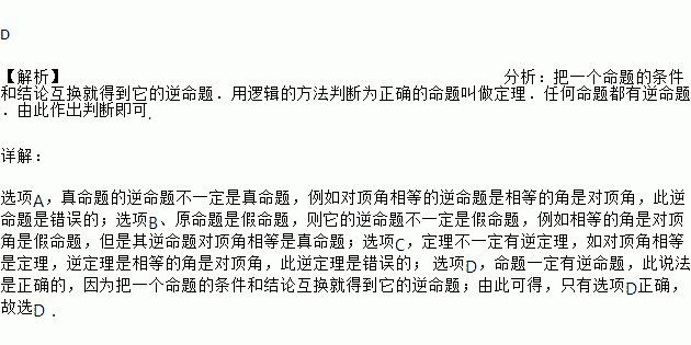 C. 定理一定有逆定理 D. 命题一定有逆命题