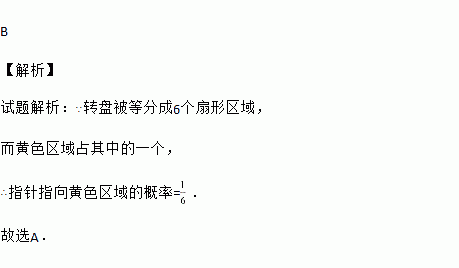 如图,一个可以自由转动的转盘被等分成6个扇形区域,并涂上了相应 的颜色,转动转盘,转盘停止后,指针指向蓝色区域的概率是 ( )