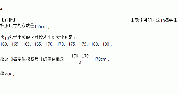 名学生校服尺寸的众数和中位数分别为( )