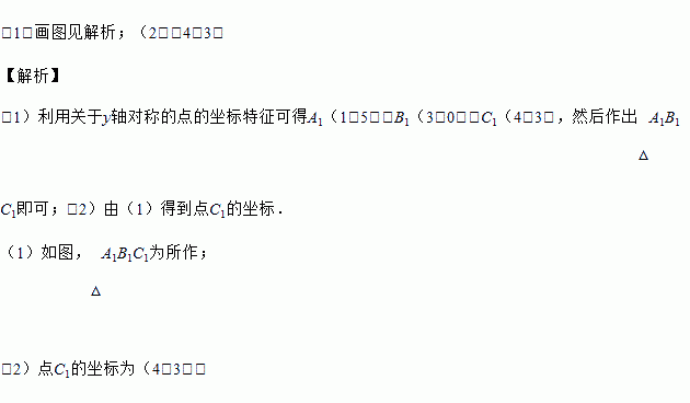 (1)在图中画出△ABC关于y轴对称的△A1B1C1,点A,B,C的对应点分别是A1,B1,C1;