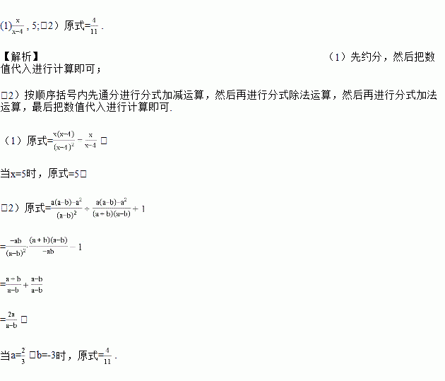 先化简,后求值:(1),其中x=5.