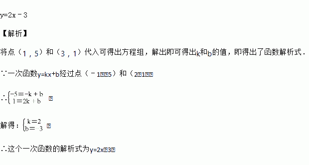 已知一次函数y=kx+b的图象经过点(﹣1,﹣5)和(2,1),求一次函数的解析式.
