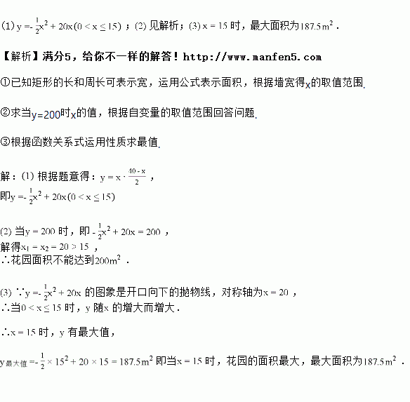 的栅栏围成,若设花园平行于墙的一边长为![]()