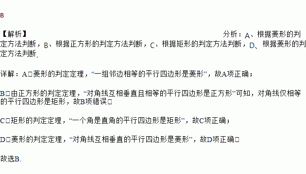 A. 当AB=BC时,它是菱形 B. 当AC=BD时,它是正方形
