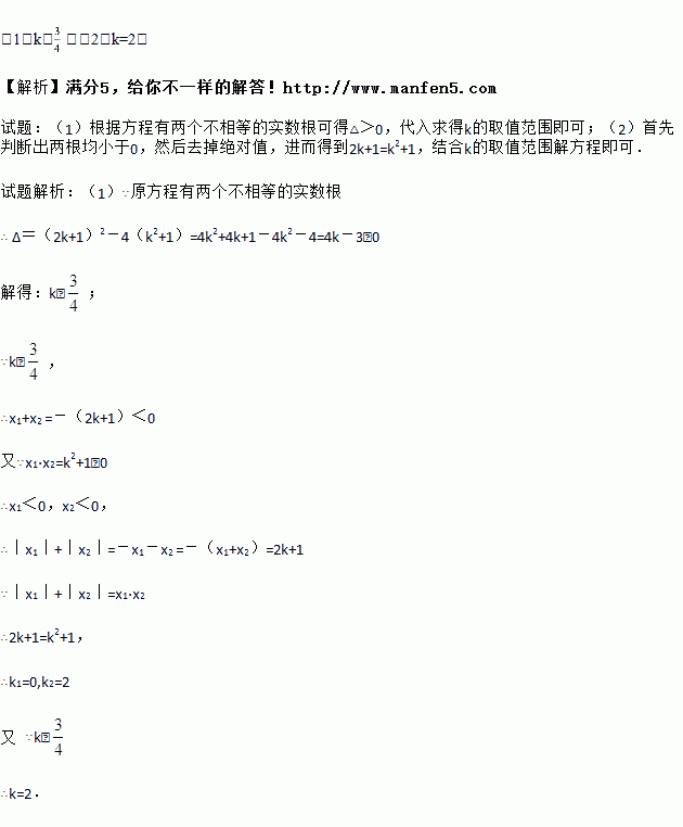 关于x的一元二次方程x2+(2k+1)x+k2+1=0有两个不等实根