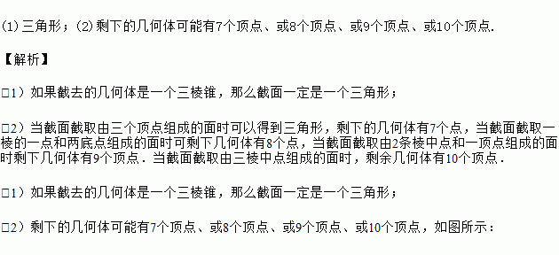 (2)剩下的几何体可能有几个顶点?