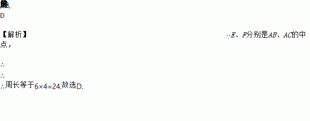 如图,菱形ABCD中,E、F分别是AB、AC的中点,若EF=3,则菱形ABCD的周长是( )
