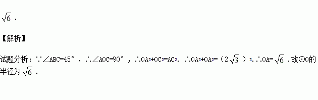 如图,在⊙O中,弦AC=2,点B是圆上一点,且∠ABC=45°,则⊙O的半径R= .