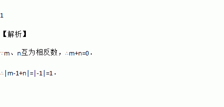 若 m,n 互为相反数,则|m+n﹣1|=________.