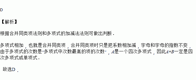 若A是四次多项式,B是三次多项式,则A+B是