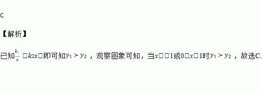 和正比例函数y2=k2x的图象交于A(-1,-3)、B(1,3)两点.若