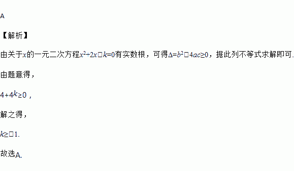 若关于x的一元二次方程x2+2x﹣k=0有实数根,则k的取值范围是( )