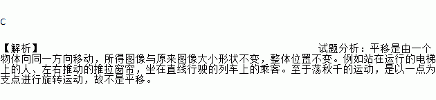 A. 站在运行的电梯上的人 B. 左右推动的推拉窗帘