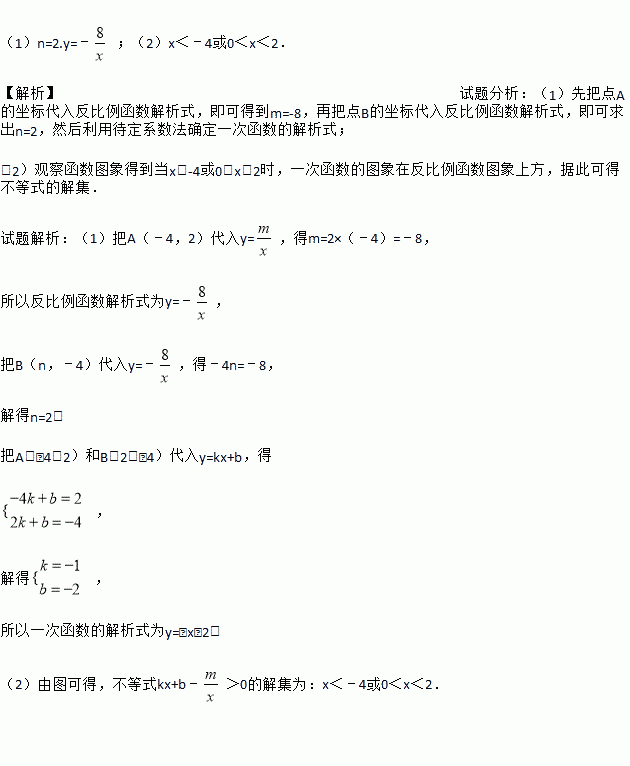如图,已知A(﹣4,2),B(n,﹣4)两点是一次函数y=kx+b和反比例函数y=的图象的两个交点.