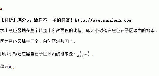如图所示,小区公园里有一块圆形地面被黑白石子铺成了面积相等的八部分,阴影部分是黑色石子,小华随意向其内部抛一个小球,则小球落在黑色石子区域内的概率是( )