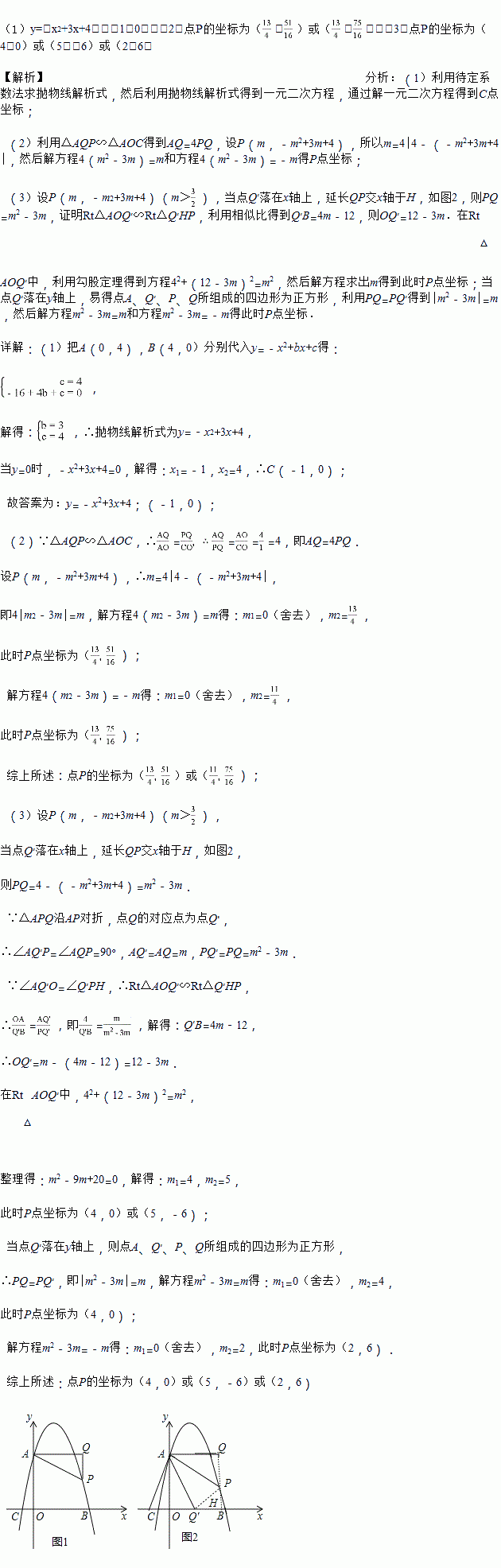 如图1,已知抛物线y=﹣x2+bx+c交y轴于点A(0,4),交x轴于点B(4,0),点P是抛物线上一动点,过点P作x轴的垂线PQ,过点A作AQ⊥PQ于点Q,连接AP.