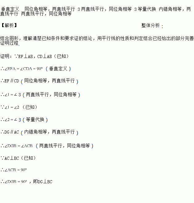 证明:∵ EF⊥AB,CD⊥AB(已知)