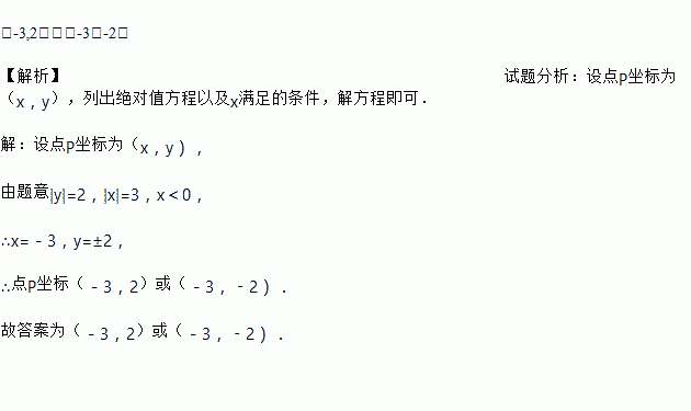 点P到x轴的距离是2,到y轴的距离是3,且在y轴的左侧,则P点的坐标是__________.