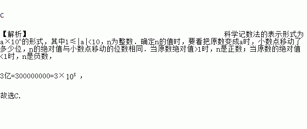 在物理学里面,光的速度约为3亿米/秒,该速度用科学记数法表示为( )米/秒
