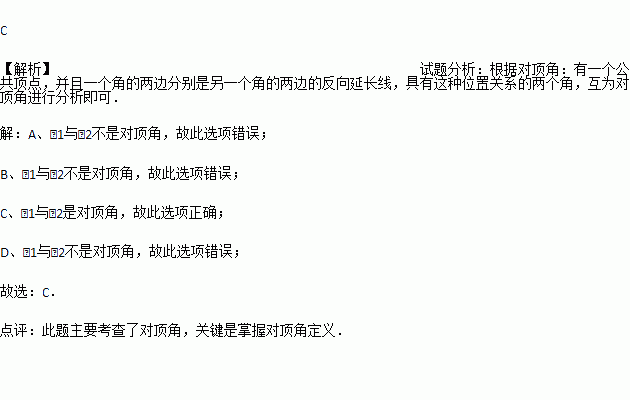 下列图形中,∠1与∠2是对顶角的是( )