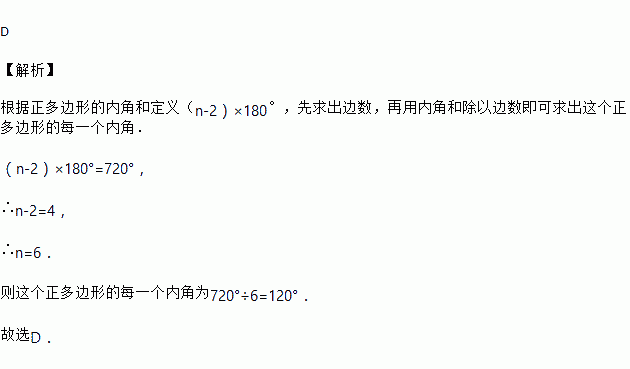 若一个正多边形的内角和为720°,则这个正多边形的每一个内角是( )