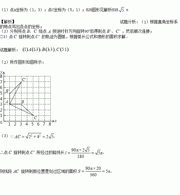 (3)在(2)的条件下,求点C旋转到点C′所经过的路线长(结果保留π).
