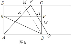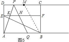 ②如图6,当3<t≤5时,即H点在F点的左侧或重合时,M为DC的中点,连接MB,![]()